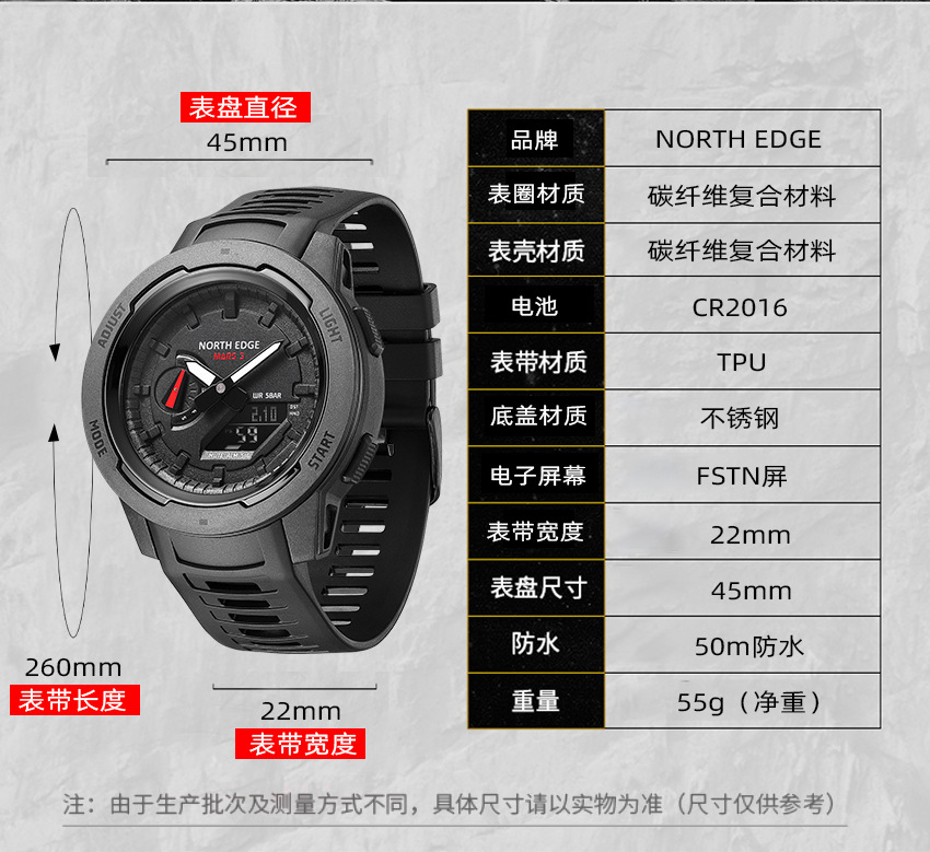 Покупаю часы North Edge, бренд качественный, уже не первый раз. Захотелось что-то вроде G-Shock, альтернативу. Часы лёгкие, со стеклом, ремешок можно заменить. С настройками пришлось повозиться, но всё просто, есть часовые пояса и автоподсветка. На руке не ощущаются. Компактные, прочные и качественные часы. Циферблат освещается весь сразу, очень хорошо. Доставка до Риги заняла три недели, продавец молодец, отправил быстро. Хороший бренд и часы, рекомендую к покупке. Спасибо.